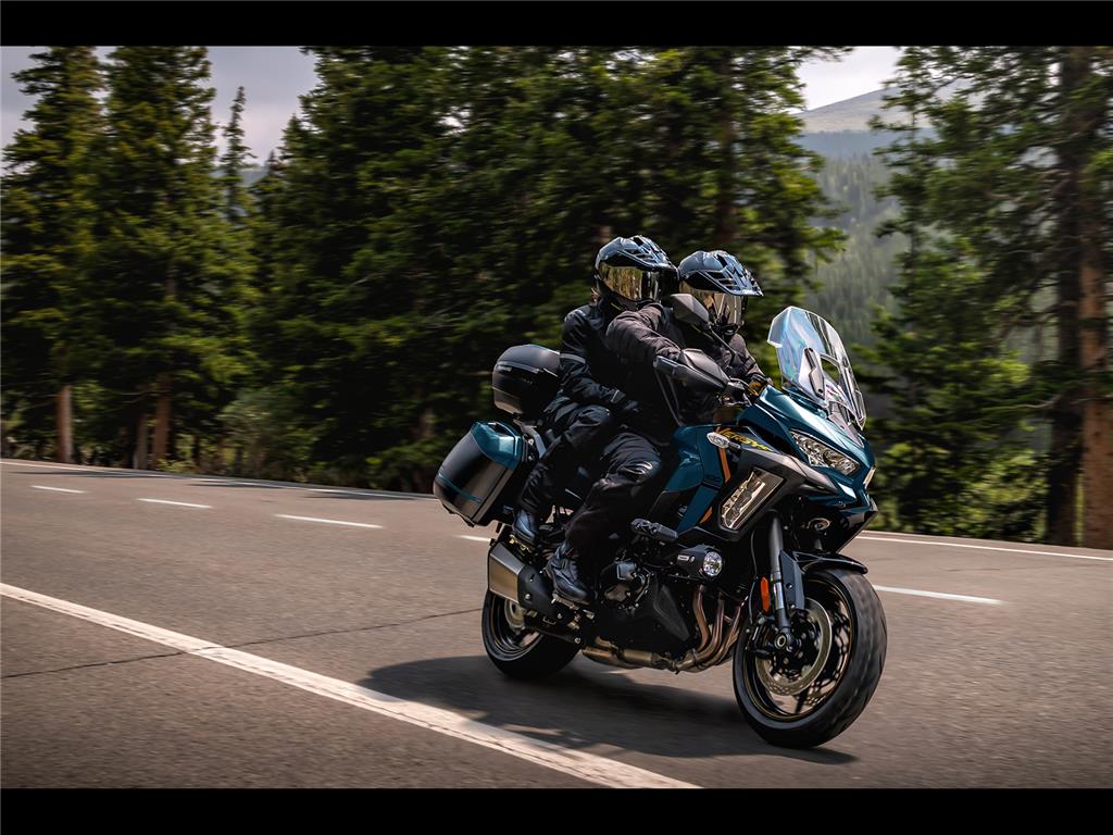 Not only is the Versys 1100 exciting to ride, but it also offers the comfort and carrying capacity to allow riders to ride long and far. A highly comfortable seat and good wind protection complement the relaxed riding position, making it easier to spend a long time in the saddle. Passenger comfort is also superb, making it easy to share the fun. Long-travel suspension capably handles a wide range of road conditions, adding to rider confidence, while on the SE model, electronic suspension with Skyhook Technology further contributes to ride comfort for both rider and passenger. A high payload can accommodate panniers and a top case simultaneously, and numerous accessories add to comfort and convenience – especially welcome on multi-day trips.