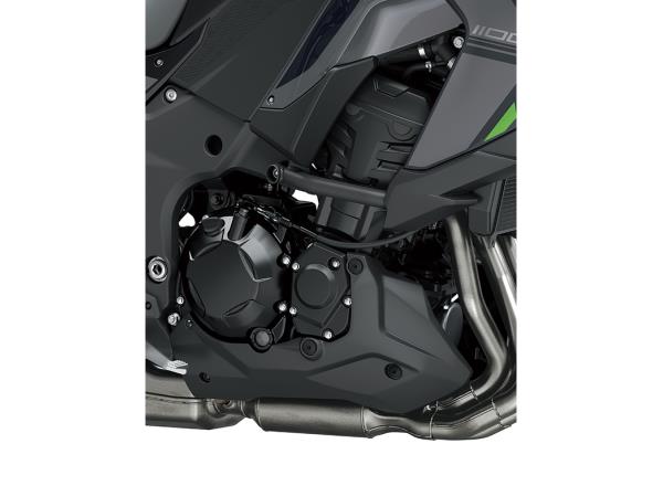 An increase in displacement from 1,043 cm3 to 1,099 cm3 gives the Versys 1100’s engine a boost in power from 120 PS to 135 PS. The more robust mid-range and increased high-rpm power contribute to increased comfort when cruising on the highway, facilitating long-distance touring. The climb from low through high rpm is even more exhilarating, while superb throttle response, strong torque at all rpm, and a seductive intake howl further contribute to riding excitement.